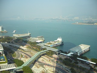 香港から、マカオや広州の南沙などの各方面にターボジェット船が出ています。ターミナルにはコンビニや、マクドナルドから、日本風のカレー屋などのレストランも入店していて、利便性は高いです。行き先ごとに、ゲート番号が異なり、入出国手続きも行っています。