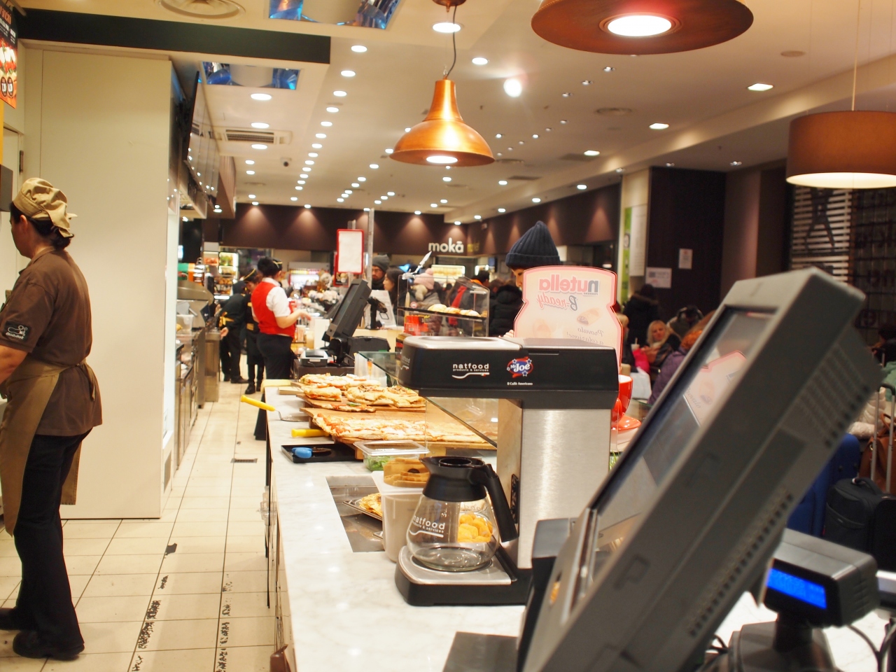駅構内にあって、他のマクドナルドなどの店が閉店してしまった日曜の夕方6時過ぎでも営業していて、駅唯一の飲食店でした。私達はピッツァやサンドイッチを食べましたが、味もそこそこ美味しくて、何よりも座席にゆっくり座れて発車時間まで時間を過ごすことが出来たのが有り難かったです。
