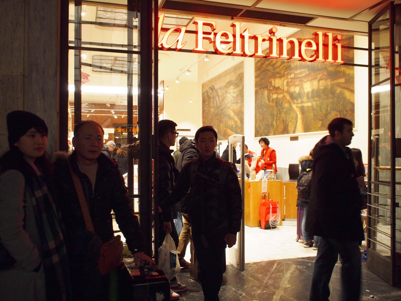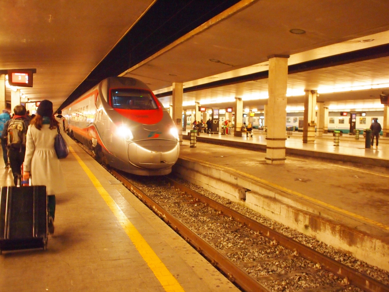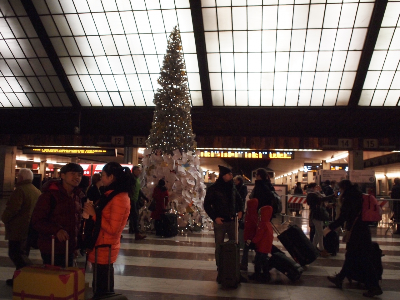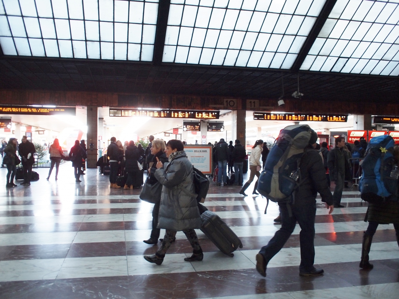 ドゥオーモにも近く、大きなフードコートや書店もあります。ただ日曜日夕方6時過ぎになると、マクドナルドも含め他の飲食店が閉店してしまったのには驚きました。荷物預かり場所は、一番右端(駅から向かって)のホーム内側にありました。