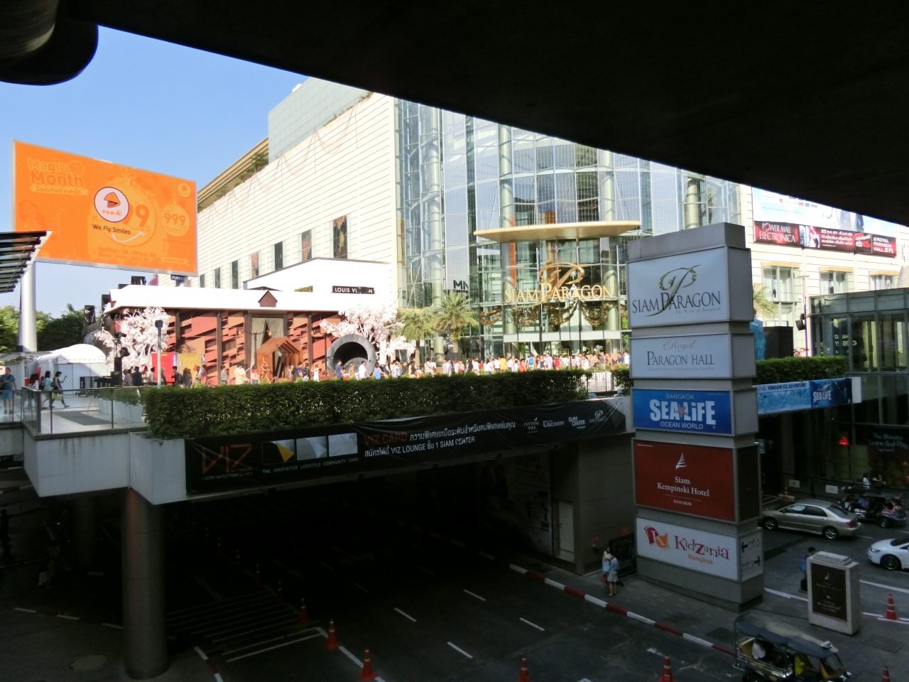 サイアム駅は、BTSスクンビット線とシャーロム線の乗り換え駅で、駅の周りは、南側に大学があり、昔からバンコクの原宿といわれたサイアムスクエアーやサイアムセンター、サイアムディスカバリー、それとサイアムパラゴンなどのショッピングゾーンに直結です。