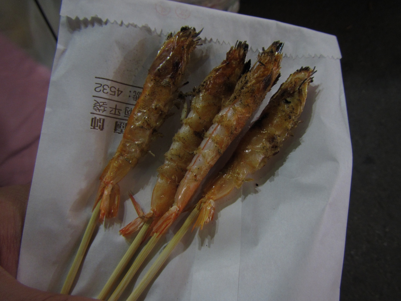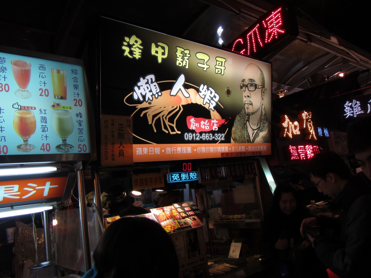 台中最大の夜市です。服や雑貨などのファッション関係の店が多いですが、飲食店も充実しています。一般的な台湾小吃、点心、台湾原住民料理などバリエーションが豊富です。日本人も一定数来るのか、日本語の受けがいいのかは分かりませんが、日本語で書かれた屋台もありました。ちなみにここの夜市の名物は懶人蝦。海老を串にさして胡椒を振っただけのシンプルなものですが、非常に美味しかったです。