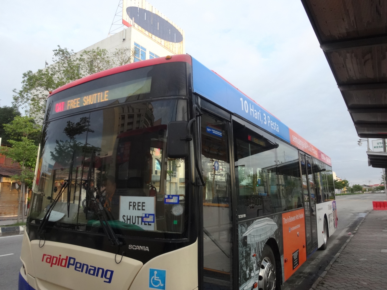 空港の到着ロビーを出て、通り1本渡ったすぐ左手にバス停があります。ちょうど401番のバスがきてコムタ行き(2.7MR)を確認し乗車しました。