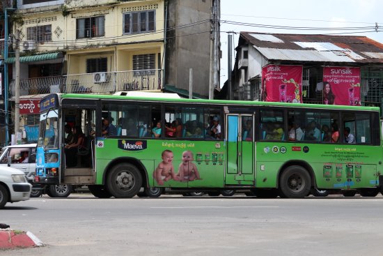 市内のローカルバスは、日本で使われていたバスが多く見られます。クルマは右側通行なのに、右ハンドルで出入口は左側のままでした。中程の出入口の扉が壊れていて、板が2~3枚打ち付けられて塞いであるのもあり、利用に不便であり危険でもあります。