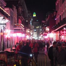 フレンチクオーターで一番有名なストリート。ライブハウスやレストラン、ホテル、おみやげ物やさんがいっぱいです。