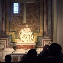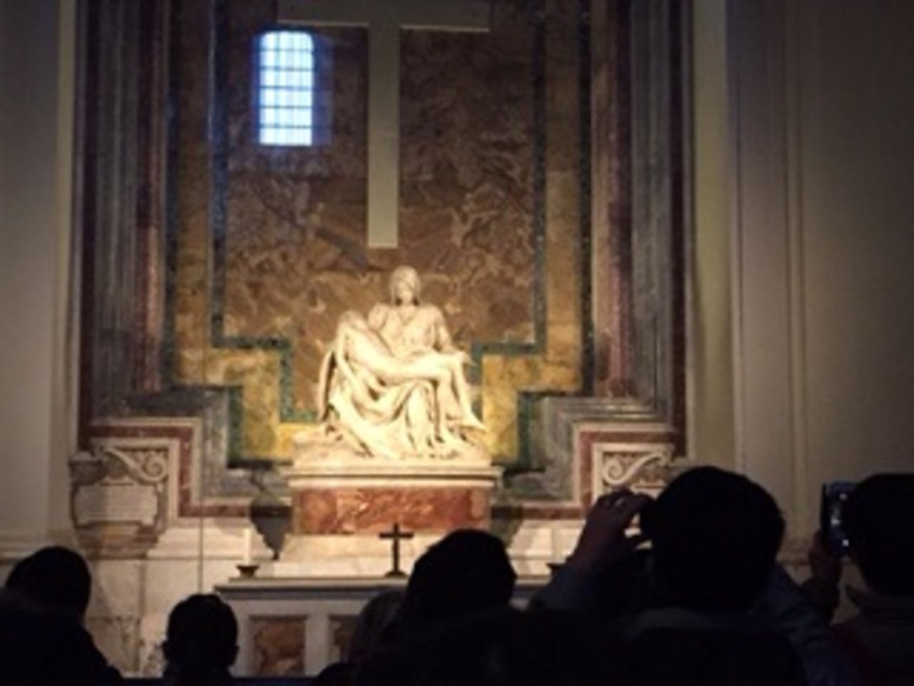 ミケランジェロの最高傑作と言われる作品です。サン・ピエトロ大聖堂に入って右側にありますが、何しろ人だかりで、近くまで寄ることができませんでした。したがって遠目で見ましたが、それでも存在感は凄く、感動しました。