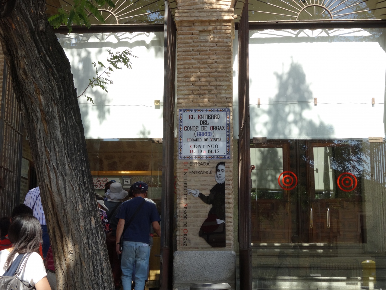 サント・トメ教会には、言わずと知れたエルグレコの傑作である、「オルガス伯爵の埋葬」が展示されています。あいにく、中は撮影禁止なので、建物の入口の写真しかありません。埋葬の参列者にはエルグレコ自身と彼の息子も描かれていますので、よく確かめてください。