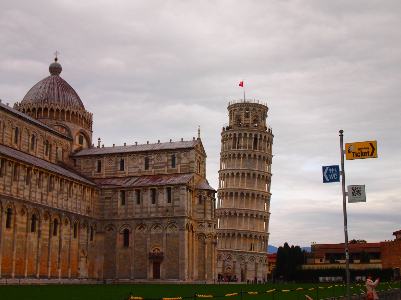 斜塔に上る為のチケットは、18ユーロ(2014年1月現在)。 今までに傾きを抑えたりする改修工事が何度も行われ(1990〜2001年は改修工事で塔の内部は公開されていなかったそうですね)、たくさんの専門家の努力や技術で観光スポットとして復活したので、お金がかかるのもしょうがないのかもしれないですね。