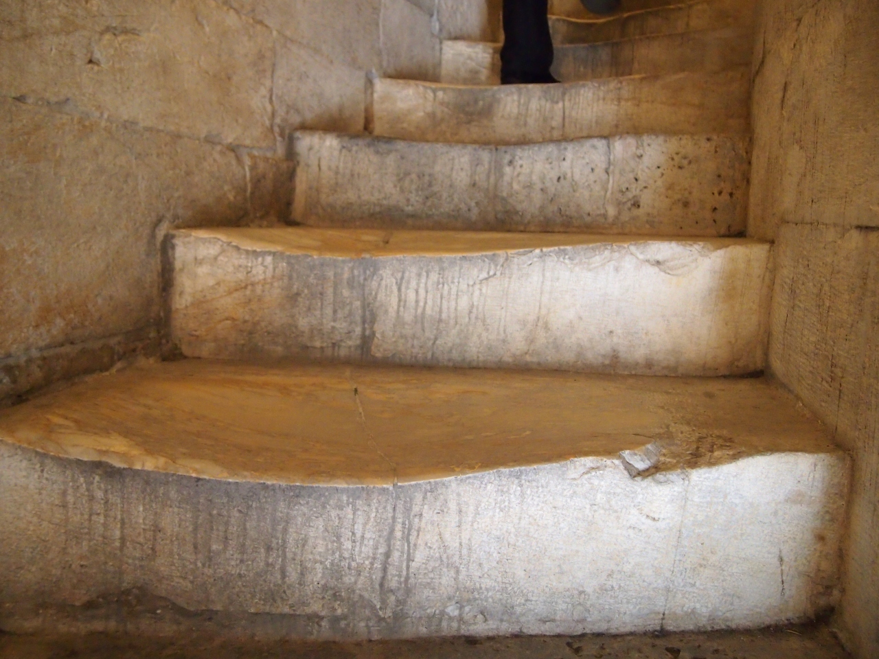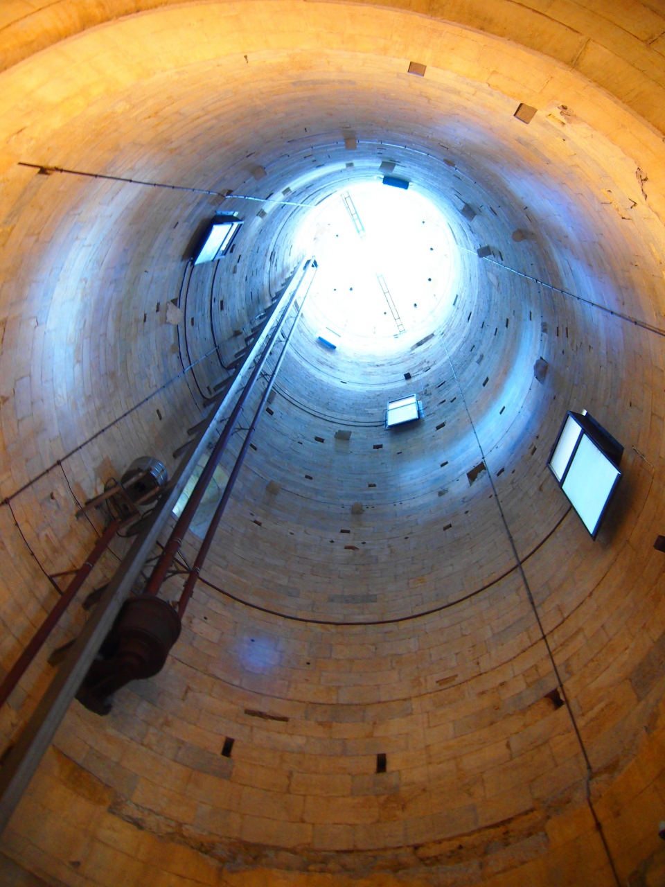 真冬の平日に行ったからか、斜塔は全然混んでなくて、予約せずとも1番近い時間帯の斜塔に上るチケットを買うことが出来ました(ただ、ガイドブックによると、冬も混んでるとと書いてあるので、一概には言えないかも)。 現在の傾斜角度は3.99度ですが、塔の中に一歩入っただけでめっちゃ斜めな感じです。 塔の階段は297段! フィレンツェのドゥオモとかと比べると、楽勝ですが、終始斜めな感覚で螺旋階段を上っていくので、ちょっと疲れるかも!?