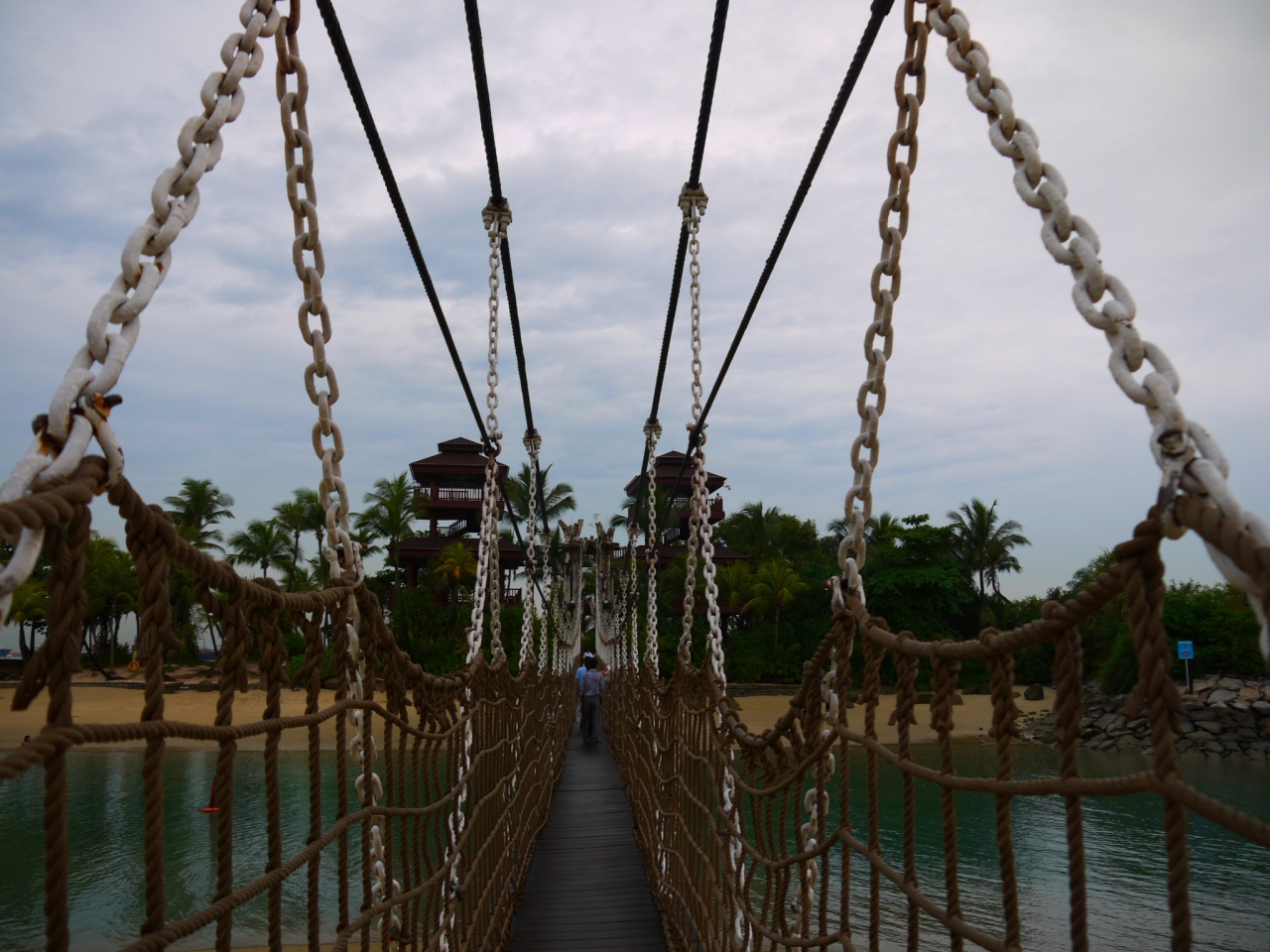 セントーサの中心にある人工ビーチです。シロソビーチからも近いです。浅いビーチすれすれに吊り橋がありそれを渡ったさきに東南アジア最南端ポイントがあります。小さな塔に上がり眺めを楽しむことができました(タンカーだらけでしたが)。東南アジアが好きなのでこの場所に行けたことが嬉しかったです!