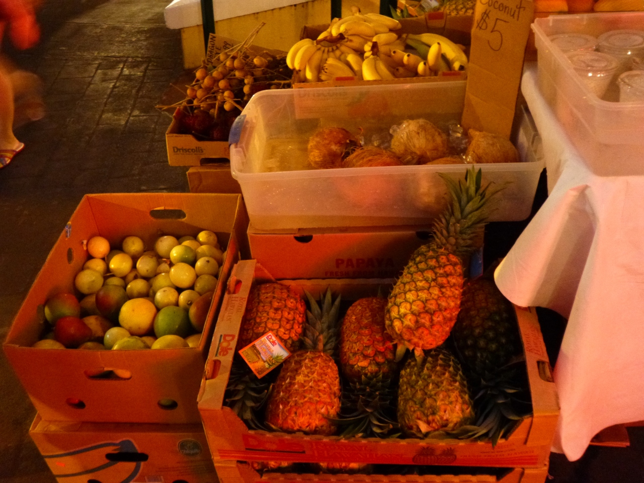 たまたまキングスビレッジを通りかかったところ、ファーマーズマーケットが開催されていたので覗いてみました。タイ料理のお惣菜や、カットフルーツなどを購入して夕食にしました。とくに果物は、滞在中に食べたカットフルーツの中で一番おいしかったです。