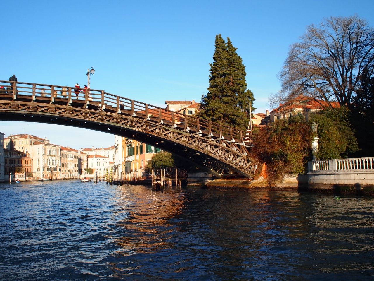 リアルト橋からサン・マルコ広場へ向かう水上バスの車窓から見ることが出来ました。大運河に架かる橋の1つですが、スカルツィ橋やリアルト橋のような石の橋でなく、木製なのでとても軽やかに見えました。何となくオランダの運河の橋のようにも思えました。