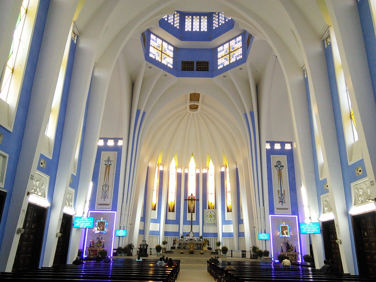 外観はなんともごちゃごちゃした独特の造りです。言葉は悪いですが“品がない”といった感じ。教会らしくないです。普段はゲートが閉められ敷地内に入ることはできませんがミサが行われる時間はもちろん教会内に入ることができます。平日も行われていて夕方5時頃行ったらミサの最中でした。内部は外観とは対照的にすっきりとしていてとても美しいです。厳かな空気が流れていました。