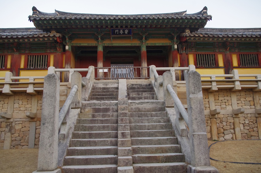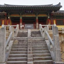 仏国寺の正面を入って最初に目にする石の階段です。蓮華橋と七宝橋、そしてその横の青雲橋および白雲橋と共に、左右対称の美しさを形成しています。仏国寺建立時に作られたとされ、国宝に指定されています。保護のため、この階段を昇ることは出来ません。