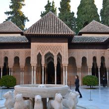 ライオンの中庭もアルハンブラ宮殿を代表するスポットの一つ。勇ましい中庭なのか?いーや、若干キャラクターのようなライオン像の噴水があるのだ。昔の通りに復元されたのだろうが、なんとなくどうなんだと感じてしまう。