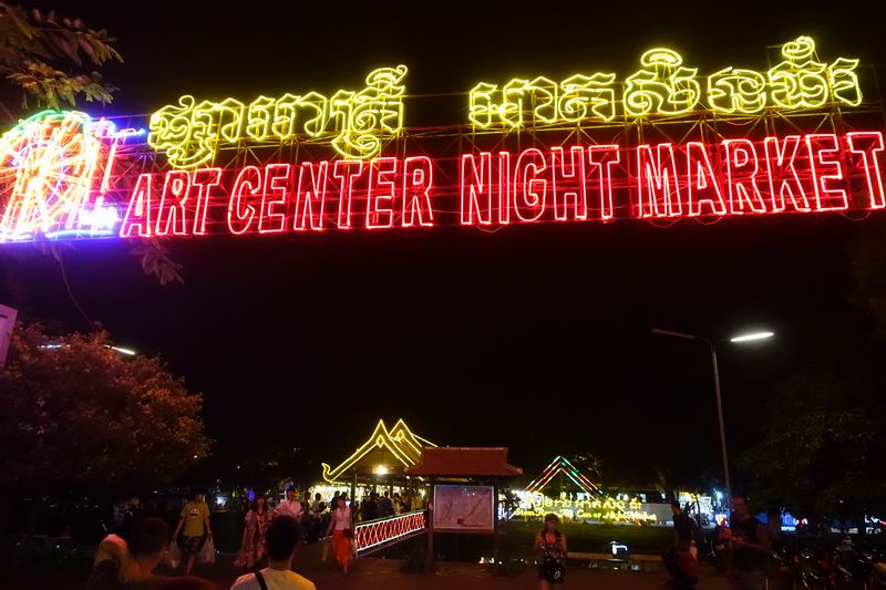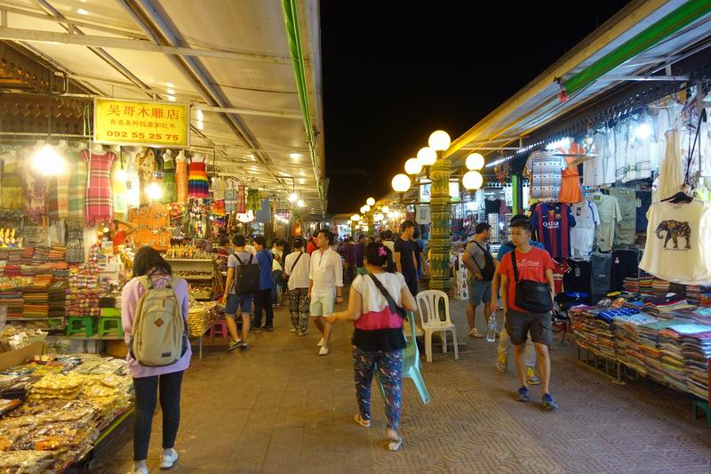 オールドマーケットからはシェムリアップ川の向こう側、屋根付きの橋を渡った所にあるナイトマーケットです。オールドマーケットが地元の人向けの店もあるのに対し、こちらはほぼ観光客向けといった感じ。バスが何台も停まっていたので、ツアーで訪れる人も多いのかもしれません。オールドマーケットは夜遅くには閉店してしまうので、夜はこちらのほうがいいのかも。売られている物は、衣料品、雑貨などほかのマーケットとだいたい同じです。