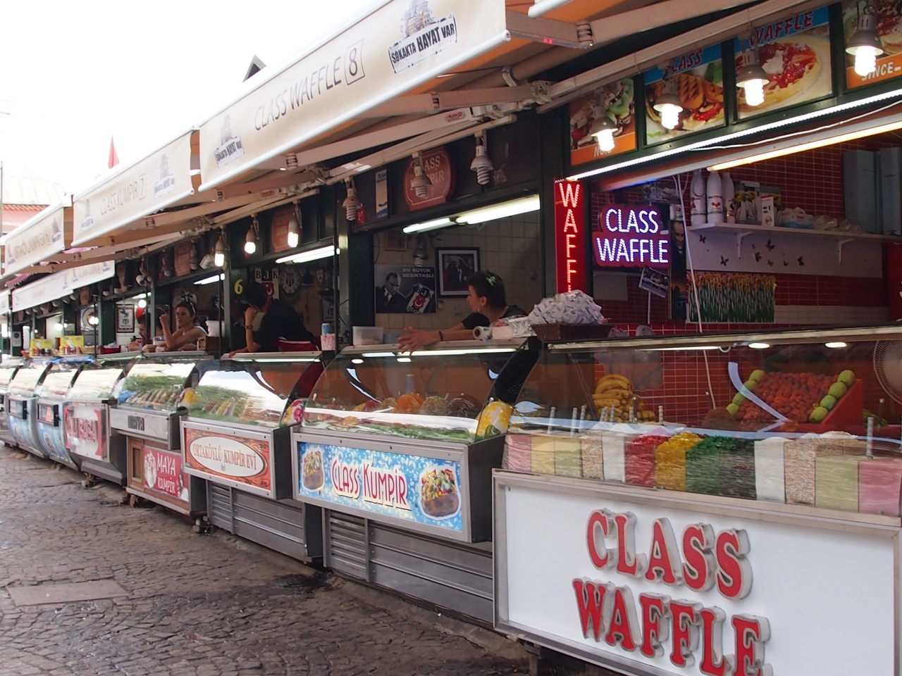 ジャーミィ周辺はお洒落なカフェ、アクセサリーやクムピルの屋台が建ち並んでいます。