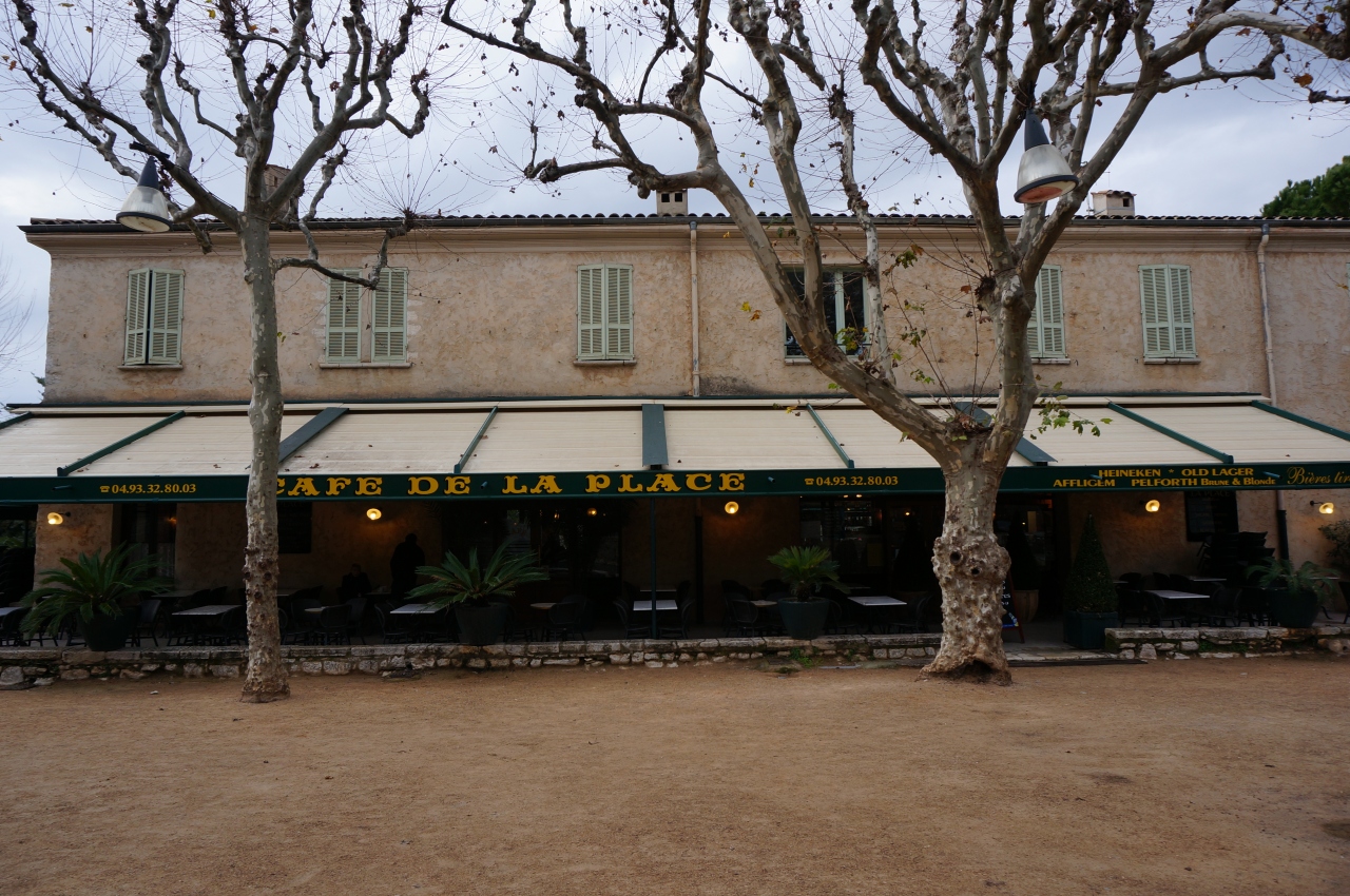 大きな木が並んでいてグリーンのサンシェイドがおしゃれなカフェです。イヴ・モンタナが経営していたことで有名です。ガイドさんが、「オランジーナのCMが、撮影された場所ですよ。」と教えてくれました。雰囲気があるカフェでした。