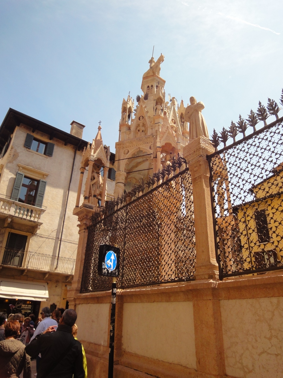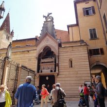 シニョーリ広場を背に左に少し曲がるとすぐ目に入る目立つ精巧な造りの廟です。様式はゴシックとの事でした。これほどりっぱな廟をフリーで、かなり近づいて見れるのはお得な感じです。ヴェローナの街はどこも混んでいましたが、ここはそんなに人が溢れていなかったので、ゆっくり鑑賞できました。
