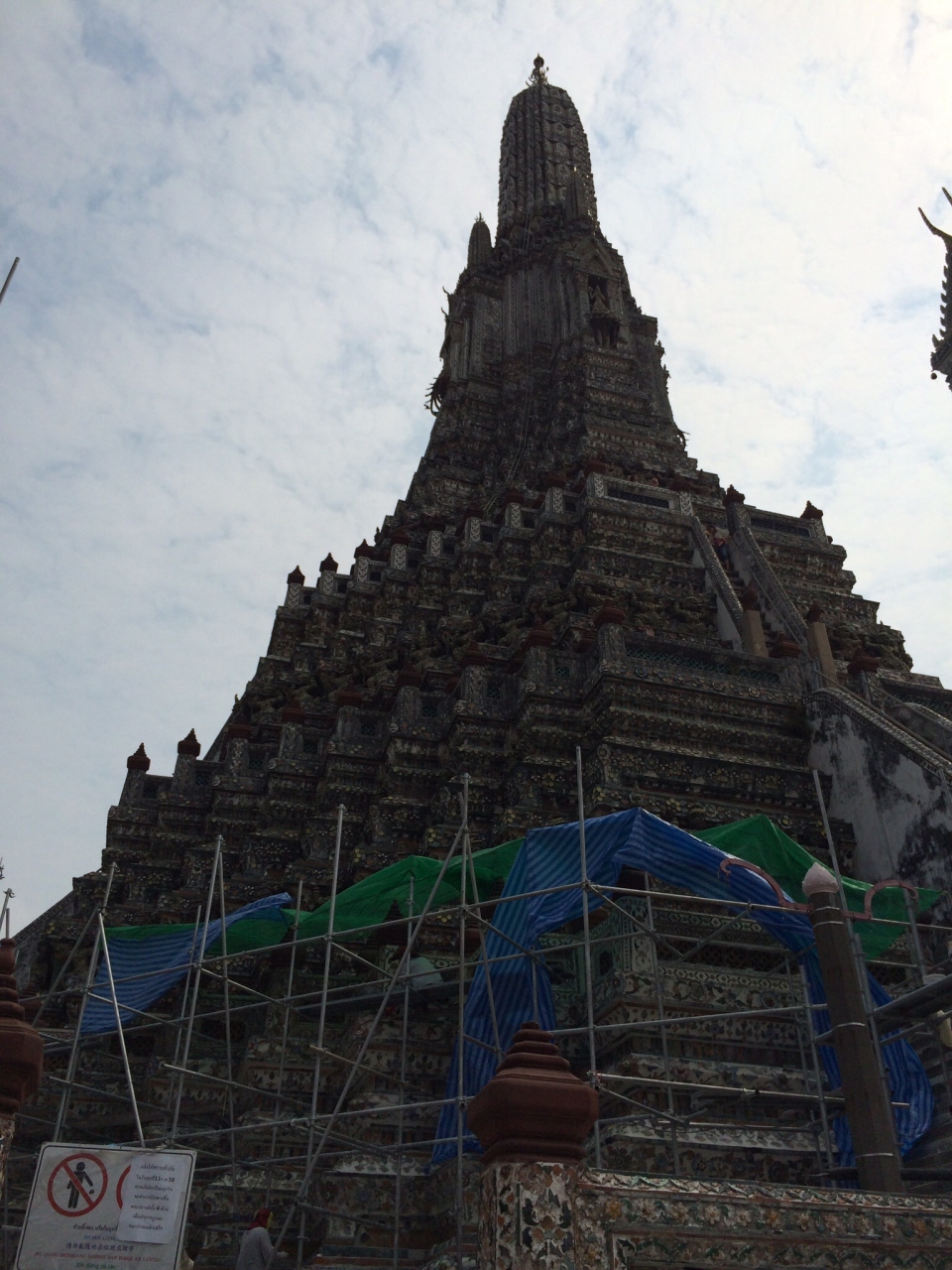今は修復工事中のようで所々で修復工事がされていました。ですが上までは登れますし、ワットアルンもうえからの景色も本当にきれいでした。ワットポー側からは、片道3バーツで船で行けます。船は5分も待てばどんどんきます。