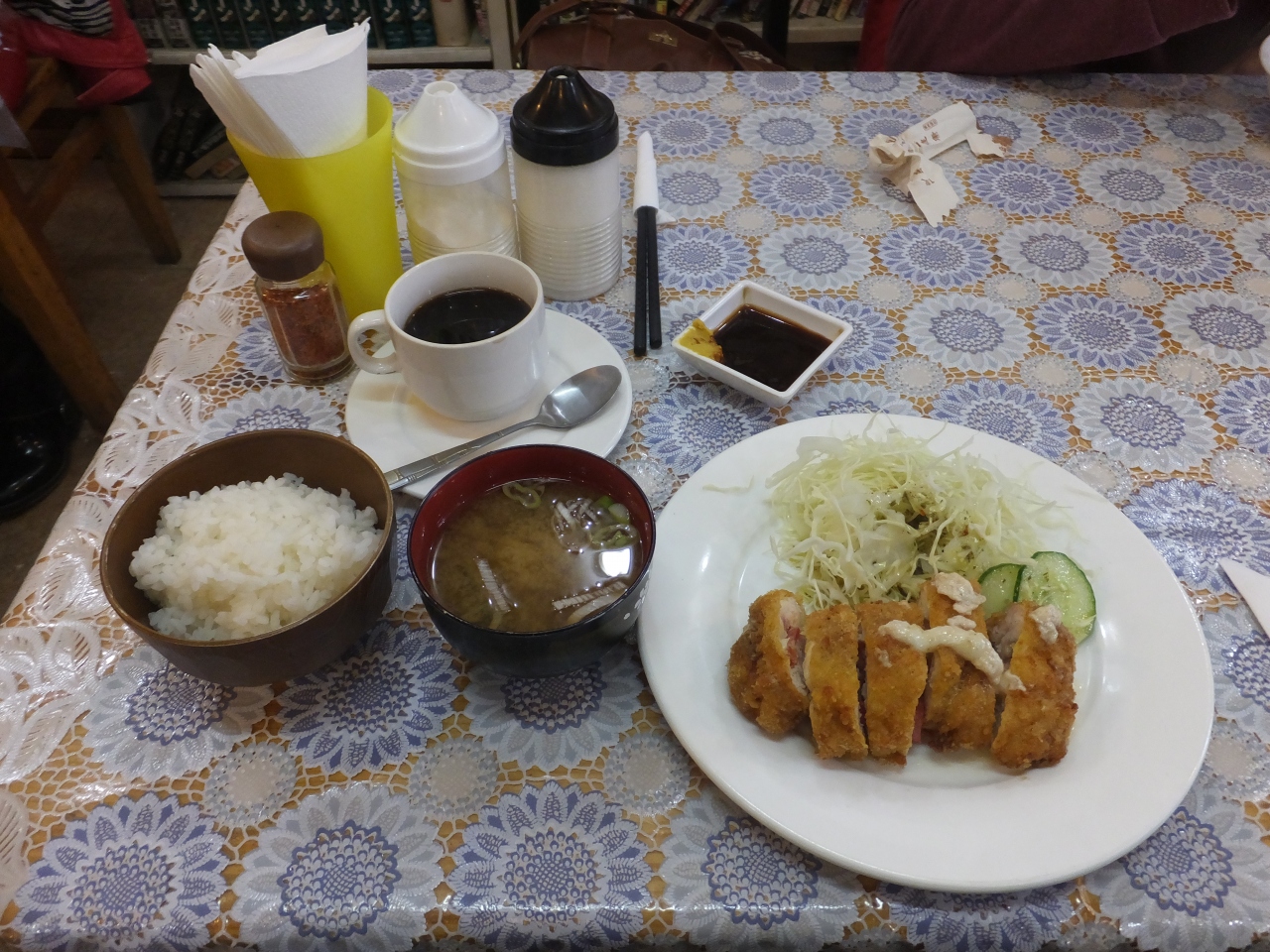 迷った挙句注文したのはとんかつ定食。トマトの入ったとんかつが斬新で美味しかった。