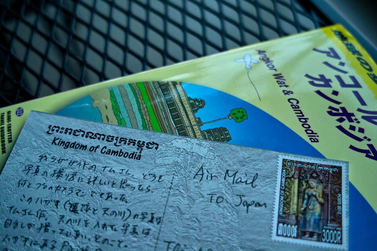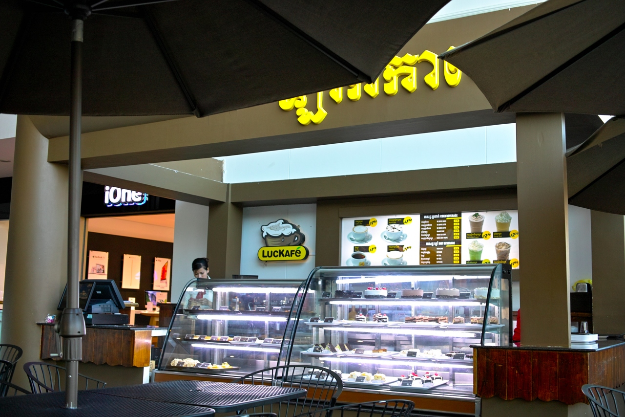 アンコール遺跡群のツアーに参加し、帰国日に空港に行くまで時間が空いたのでホテルからごく近いここラッキーモールに行って見ました。2階に通りを眺められるカフェがあったので、窓際に陣取りエアメールを書いたり本を読んだりして過ごしました。