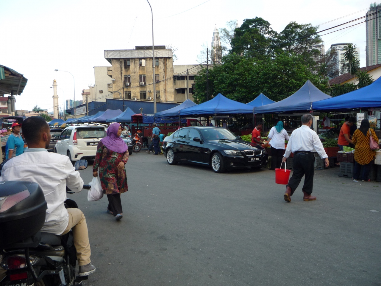 クアラルンプールの観光地を見すぎて疲れて来た方には良いかもしれません。チョウキット駅から大通りのモノレール線に沿ってメダンタンク駅方面に歩いて行くと途中にJalan Raja Alangが見えてきます。そこを曲がるとチョウキットウエットマーケットがあるのですが、その通りからRaja Bot通りの一帯に広がっているマーケットです。かなり広いのでぐるっと見て回るには結構時間がかかりました。野菜や果物が中心ですが屋台もたくさん有り食事もとれました。とても活気のあるマーケットで見ているだけで楽しかったです。この辺りの店は夕方から開店する店が多いらしいので夕方からで出かけることをお勧めします。