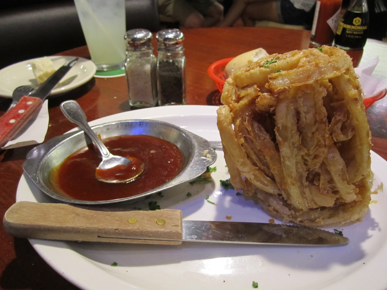 昨年はオニオンフライを食べなかったので今年はチャレンジしました。かき揚げのようなものかな?と思ってましたがそれよりカリッとしていました。もちろん定番のリブもいただきベイクドポテトとコールスローサラダをセレクトしました。どちらも美味しいのでおすすめです。帰りは食後にホテル名を行ったら送ってくれます。