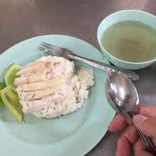 BTSスクンビット線のチットロム駅で下車をしてセントラルワールドを左手に見ながら小さい川を渡り、交差点を右に曲がると、緑色のポロシャツを着たカオマンガイ屋さんがあります。