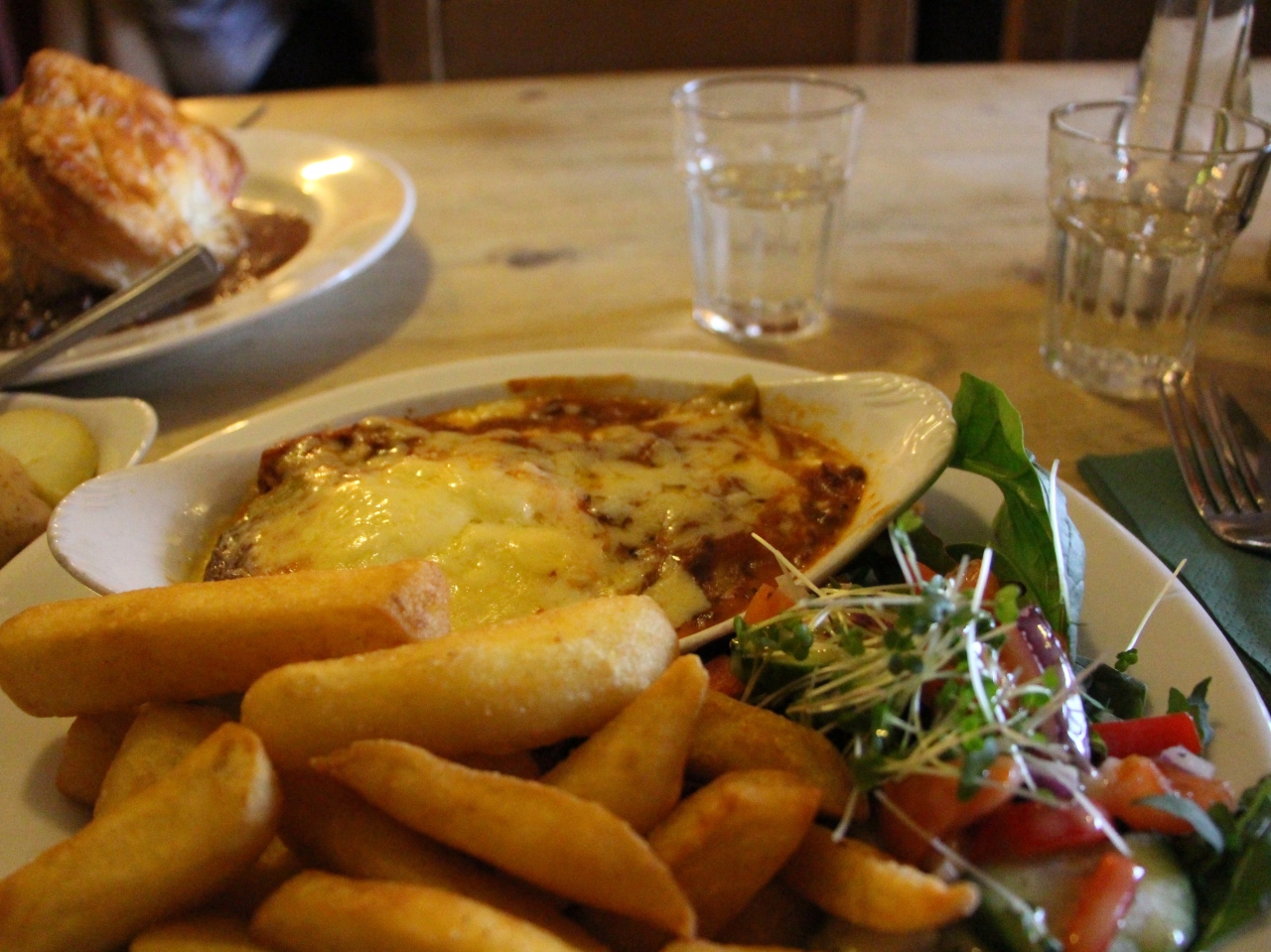 Kidney Pie Steak、Fish & Chips、Today’s Special(この日はラザニア)をオーダーしたが、お料理はどれも美味しく、3種ともはずれがなかった。