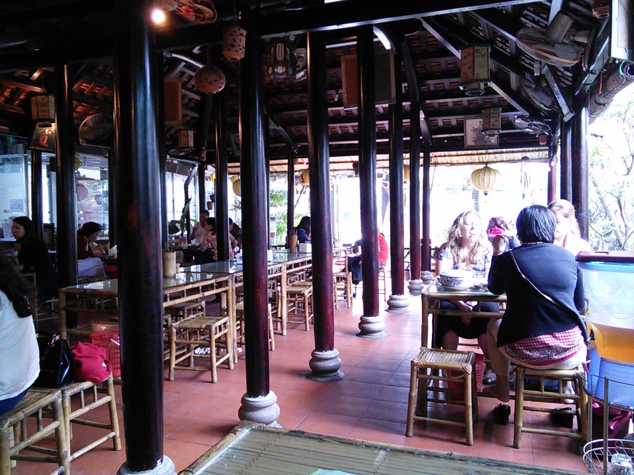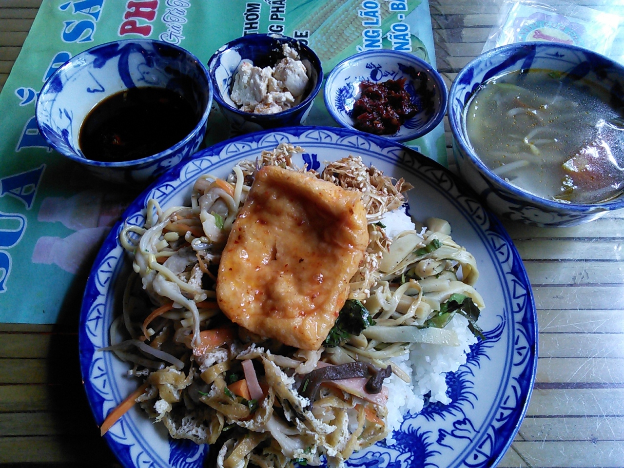 安くておいしい精進料理店と聞いたので行ってみました。おすすめは鍋だったのですが1人だったのでコム・ディア(皿飯)をオーダー。料理が運ばれてきてびっくり、なかなか豪華です。メインの皿飯以外にもチーズのような味やいの豆腐(おそらく豆腐ようの類い)と辛味噌とスープが付いてきました。もちろん肉類は一切使われていません。どれも洗練された味で言うことなしのおいしさでした。これでなんと17000ドン!