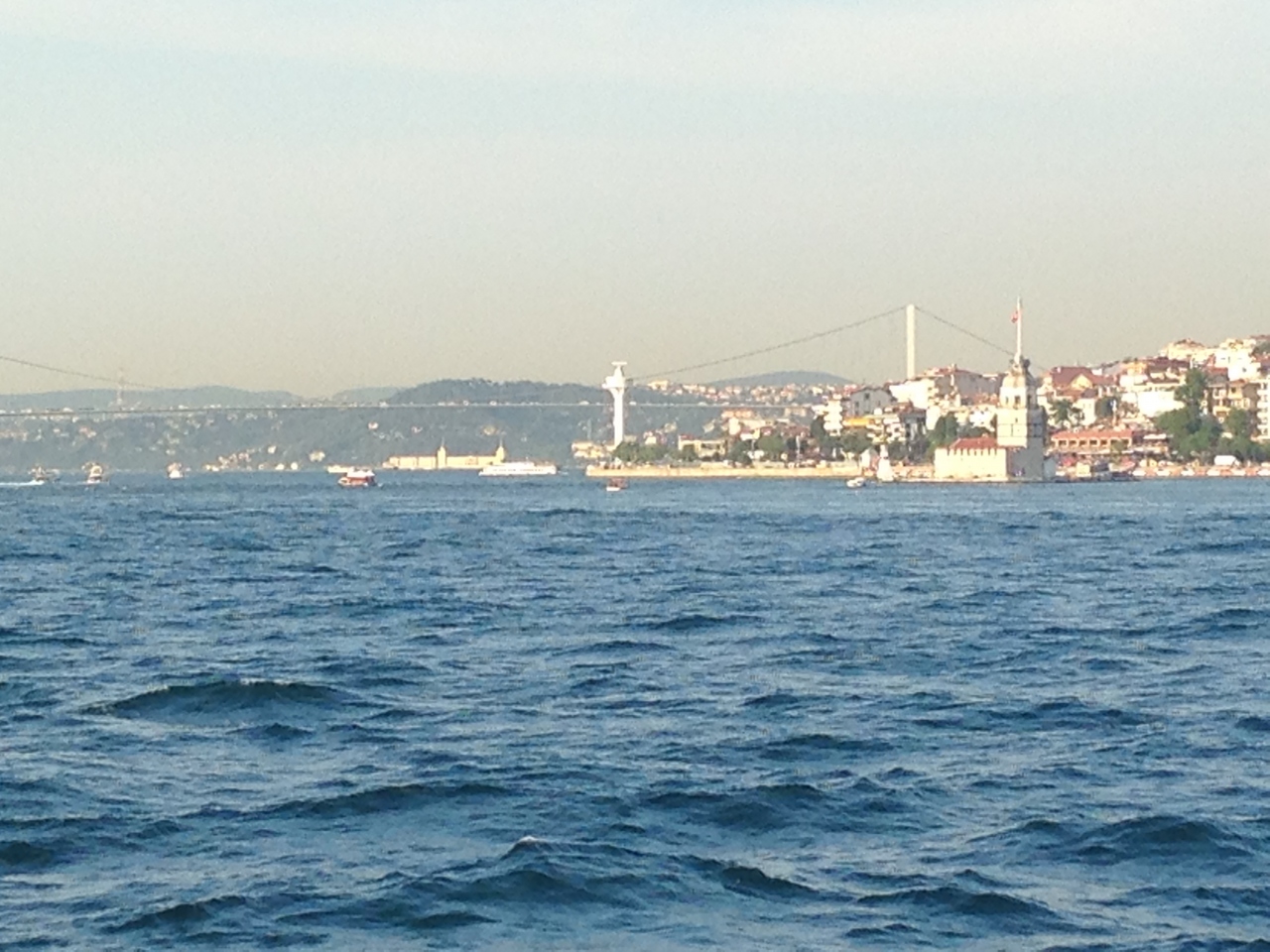 観光クルーズ船のように塔の近くまで行くことはありませんが、遠目にみる「乙女の塔」は、海に浮かんでいるという表現がぴったりでした。
