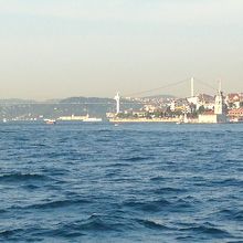 サバサンドのメッカであるエミノニュから、アジア側のカドキョイまでフェリーで移動中に乙女の塔を見ることができました。
