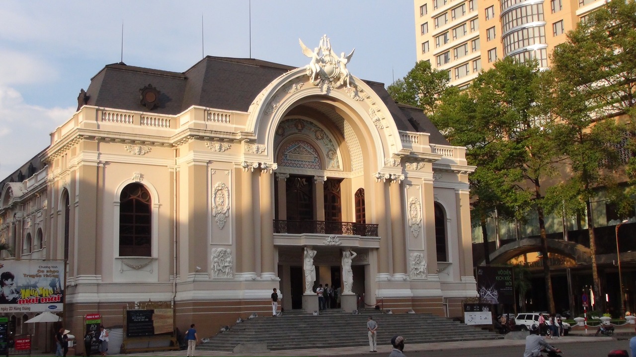 ドンコイ通りとレロイ通りの交差点にあります。ドンコイ通りを散策していると、ちょうど中心に位置しているので、散策の目印のようにしていました。19世紀末にオペラハウスとして建築されたそうで、今も公演が行われているようで看板が出ていました。中には入れませんでしたが、外から見るだけでも重厚感のある建物で存在感があります。夜にはライトアップされていて綺麗でした。