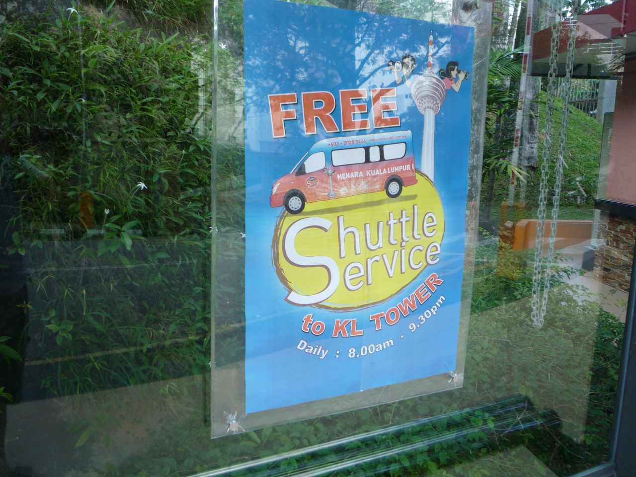 タワーはGOKLフリーバスのパープルラインを使ってチャイナタウンからならKL TOWERのバス停かブキビンタンからならWISMA MPLのバス停で降ります。そこから歩いて5分くらいでKLタワーの入り口が見えて来ます。そこに丘の上に行く為のフリーシャトル乗り場が有るのでそれに乗ればタワーの入り口まで連れて行ってくれました。入場料は2種類で最上階まで行くなら99リンギットと展望階だけなら49リンギットです。