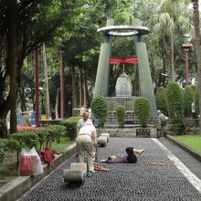二二八記念公園の南側にあります。小石が敷き詰められたまっすぐな歩道で、「裸足であるけば足裏のツボが押され健康になる」という代物。小石は結構とがっていて‥痛~い!私はとても歩けません。この石の上で運動したり寝そべる方々‥恐れ入りました。