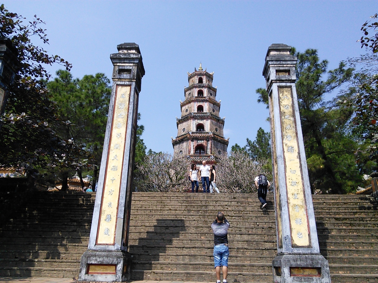 フエのシンボル的な存在にもなっている七層八角形のトゥニャン塔はもちろん見応えがありますが個人的には中庭に展示されている寺とは不釣り合いな自動車が気になりました。これはベトナム戦争中この寺の住職が政府に抗議してサイゴンのアメリカ大使館前で焼身自殺するために乗って行った車。そんな悲しい出来事とは対照的な鮮やかなスカイブルーが印象的でした。
