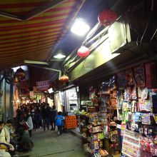 九份の商店街といった感じです。狭い道に左右にぎっしりおみやげ屋さんやお茶屋さん、食べ物屋さんが立ち並んでいます。