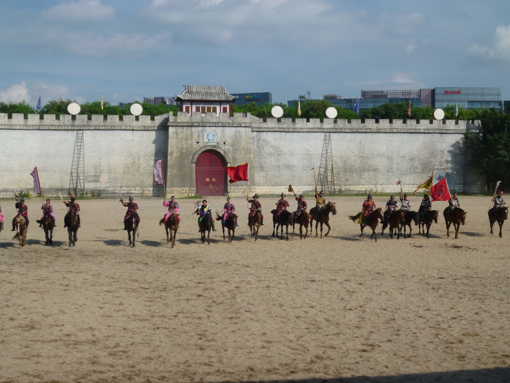 中国の独特な文化を育んだ雰囲気漂う民俗村を訪ねました。日本のテーマパークよりは安いですが、中国のテーマパークの中でも高額な入場料ですね。広大な敷地には中国各地の遺跡や名所など再現され有料のレンタバイクやカートなどで巡ることができます。またアトラクションエリアでは民族舞踊や独特な音楽が流れ、兵士たちが繰り広げる騎馬戦には若い男女数十名による馬術の腕前を競いあうような演出に敵に勝利するという物語になっています。迫力ある技は大変感動しました。全て中国語の案内になります。ちょっと気になったのは休憩を取るCaféはドリンクやアルコールなど、とても高いので損した気分になりました。ご注意を・・・。