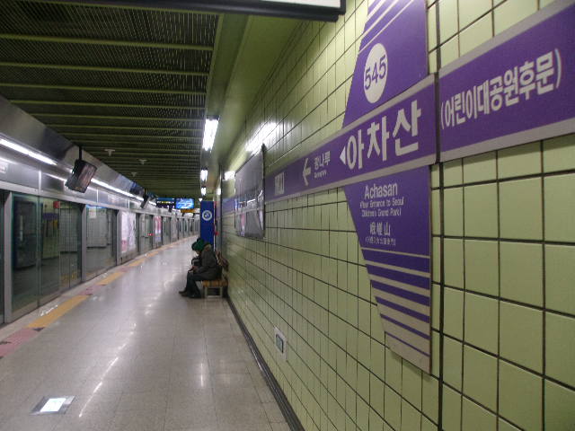 ソウル市街地の南東寄りにあるオリニ大公園の最寄り駅としては、同名のアクセス駅が地下鉄7号線沿いにありますが、この路線には金浦からは乗り換えてアクセスする必要がある一方で、こちらのアチャサン駅は地下鉄5号線沿いにあって、金浦空港からはダイレクトで、仁川空港からも孔徳などで一回乗り換えるだけでアクセスできるのでとても便利です。オリニ大公園のもう一つの最寄り駅として、公園利用者は覚えておかれると良いでしょう。