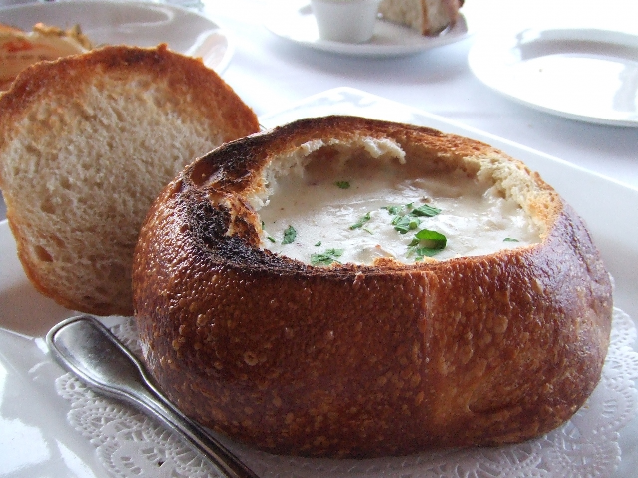 魚介類のメニューが食べ歩きできます。おすすめはやはりパンに入ったクラムチャウダーです。日本ではお目に書かれないサイズで食べ応え十分でおいしかったです。