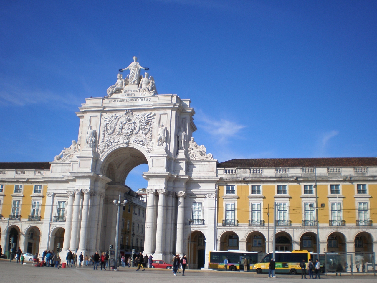 買い物客で賑わうアウグスタ通りをコメルシオ広場に向かって歩くとくぐる門、それが勝利のアーチです。