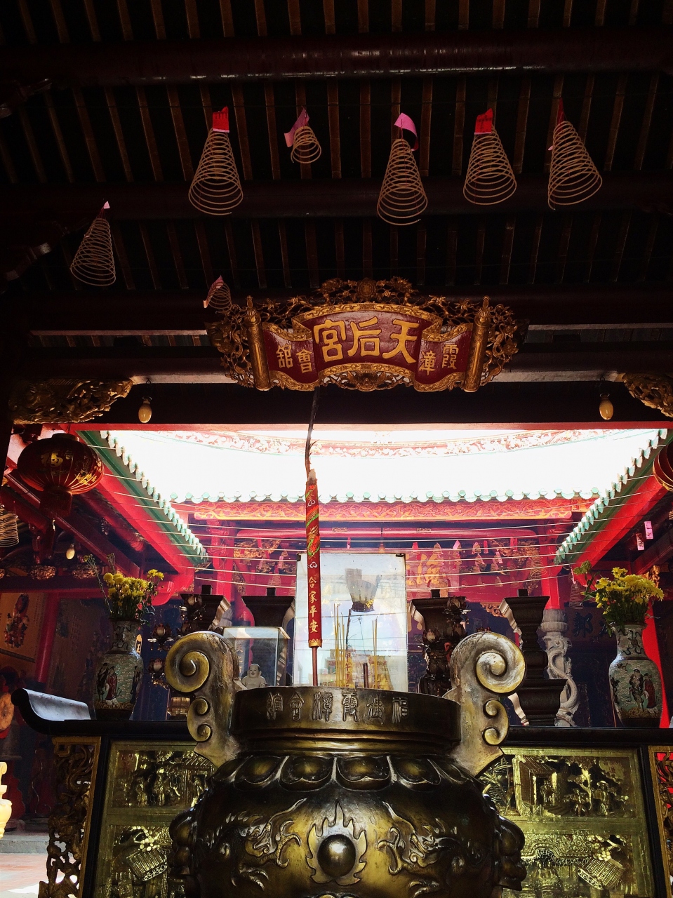ガイドブック等で見ていた沢山の渦巻きお線香が焚かれている様子を見たくて行きました。