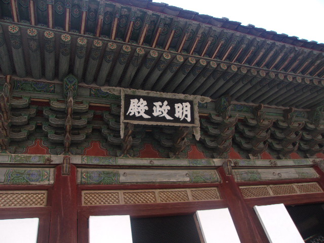 昌慶宮の最初の”広場”的な石畳が続くエリアが、この明政殿前で、広々としたアングルで王宮らしい雰囲気を満喫できるので、コーナー付近から撮影するととても映える美しい建築です。ただ、ここの石畳のコーナー付近は日当たりが悪く、冬季は凍結していて非常に滑り易いです。転倒にはくれぐれもご注意下さい。