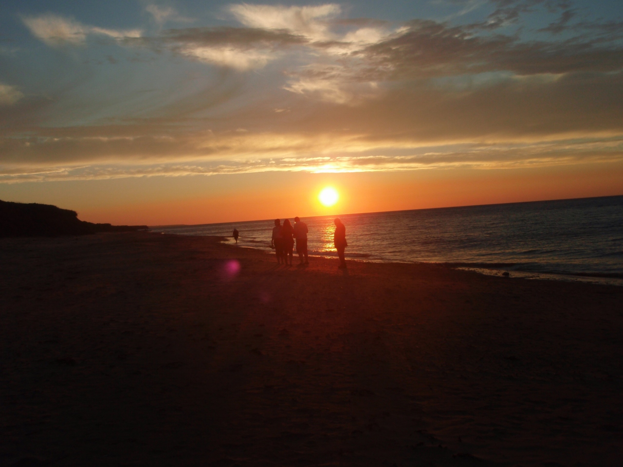 キャベンディッシュから夕陽を見にプリンスエドワード国立公園のビーチへ行ってみました。午後6時以降は入園料もいらなくなるとのことで、そのまま入ることができました。赤土のビーチや崖が夕陽に照らされてますます赤くなる様はとても綺麗でした。私たちの他にもたくさんの人たちが見に来ていて、カメラマンらしき人もいました。
