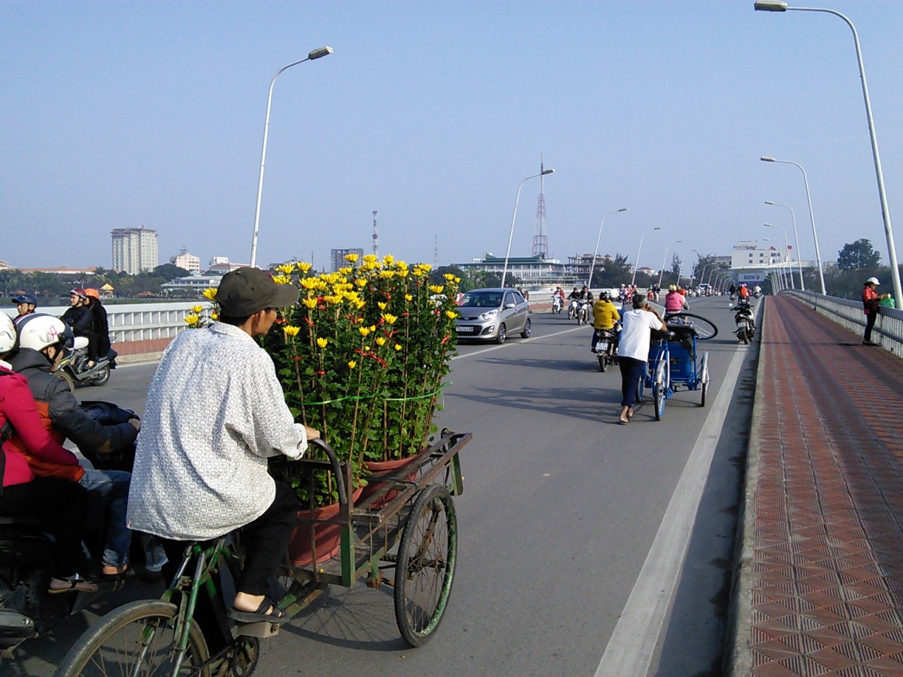 フエ市街に架かる3つの橋の真ん中。500mほど下流にあるチャンティエンは幅が狭く車の通行が時間帯によって規制されているので1番実用的な橋と言えると思います。歩道も広く橋の上からのフォン川の眺めも抜群。晴れた日などは最高に気持ちいいです。