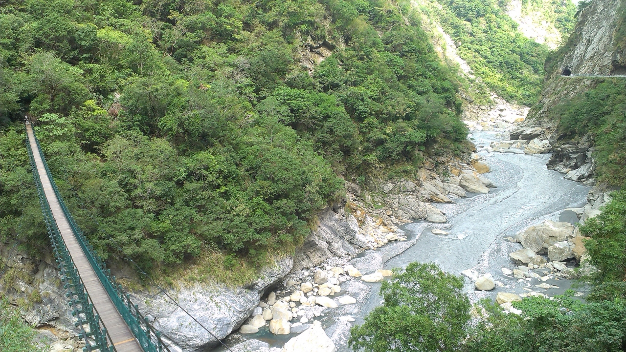 花蓮から乗り放題のバスに乗り、タロコの入り口の次に訪れたのがここ、燕子口です。他のツアーで来たと思われる方たちはヘルメットを着用していたのですが、私たちはもらえず岩のトンネルや山道を少し恐れながら進みました。また、バス停からすぐのところにつり橋があるのですがどうやら先に申請をしないと渡ることができないようです。山頂方向に15分ほど歩くと小さな売店があります。私たちはそこで引き返し次のバスを待つことにしました。