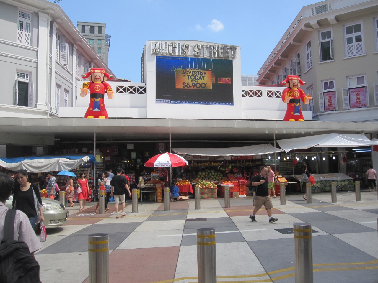 ブギスは若者に人気の町です。ショッピングセンターやフードコートはもちろん、ブギスストリートにはいくつもの格安店が軒を連ねています。アクセサリー、雑貨、衣類、時計、果物等々。平日昼間でも大変な人ごみですが、一見の価値はあると思います。シンガポールの庶民的な雰囲気を味わいたければぜひ。