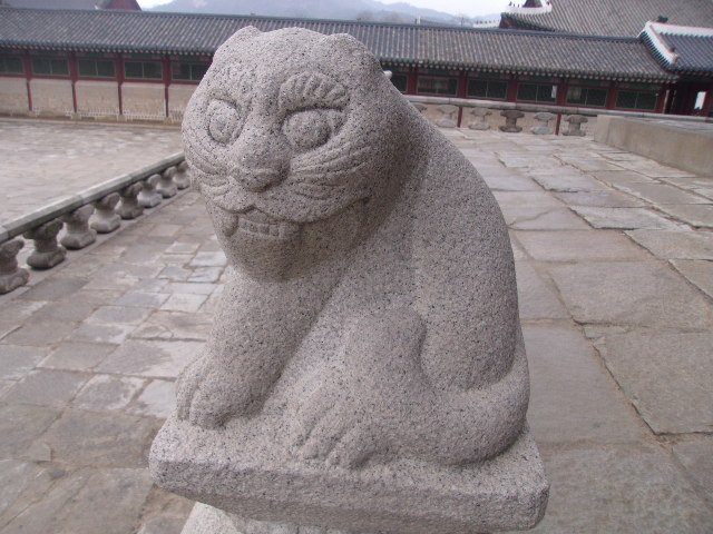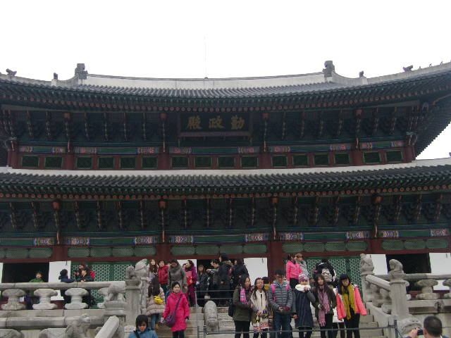 景福宮観光のハイライトの一つともいえる建造物がこちらです。立地的にも出入口が近いために、閉門時間間近まで、常に混雑している印象があって、人を入れずに撮影したいという方にはちょっと苦労が多い所かと思います。内部も覗けるようになっていますし、撮影に関しても厳しくないので、被写体としてとにかく色々なアングルから好みの装飾などを探しながら歩くと良いかと思います。