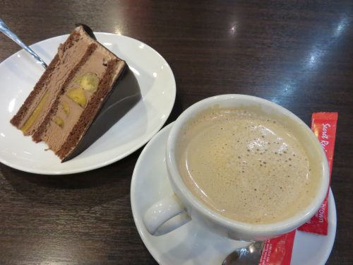 チェーン店ですのであちこちでこの看板を見ることができます。他店で飲食した際に ケーキが気になったのですが 食べることができなかったので 出発前に空港の支店で食べてみました。