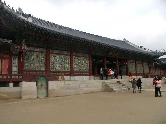 こちらの建物は、国王の寝殿として設置された康寧殿の奥(北側)にあり、サイズ的には康寧殿と比較するとやや小ぶりな、王妃の寝殿として使用された寝殿です。”女性のための寝殿”ということで、ここは内部装飾のデザインがとても艶やかで美しいので、是非ご注目下さい。